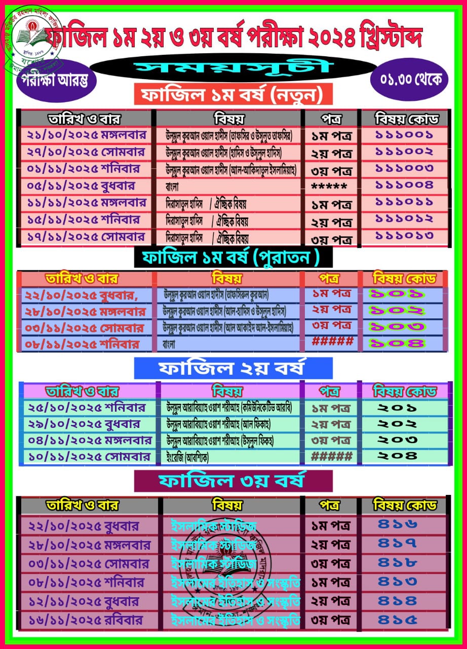 ফাজিল ১ম, ২য়,৩য় পরীক্ষার রুটিন ২০২৪