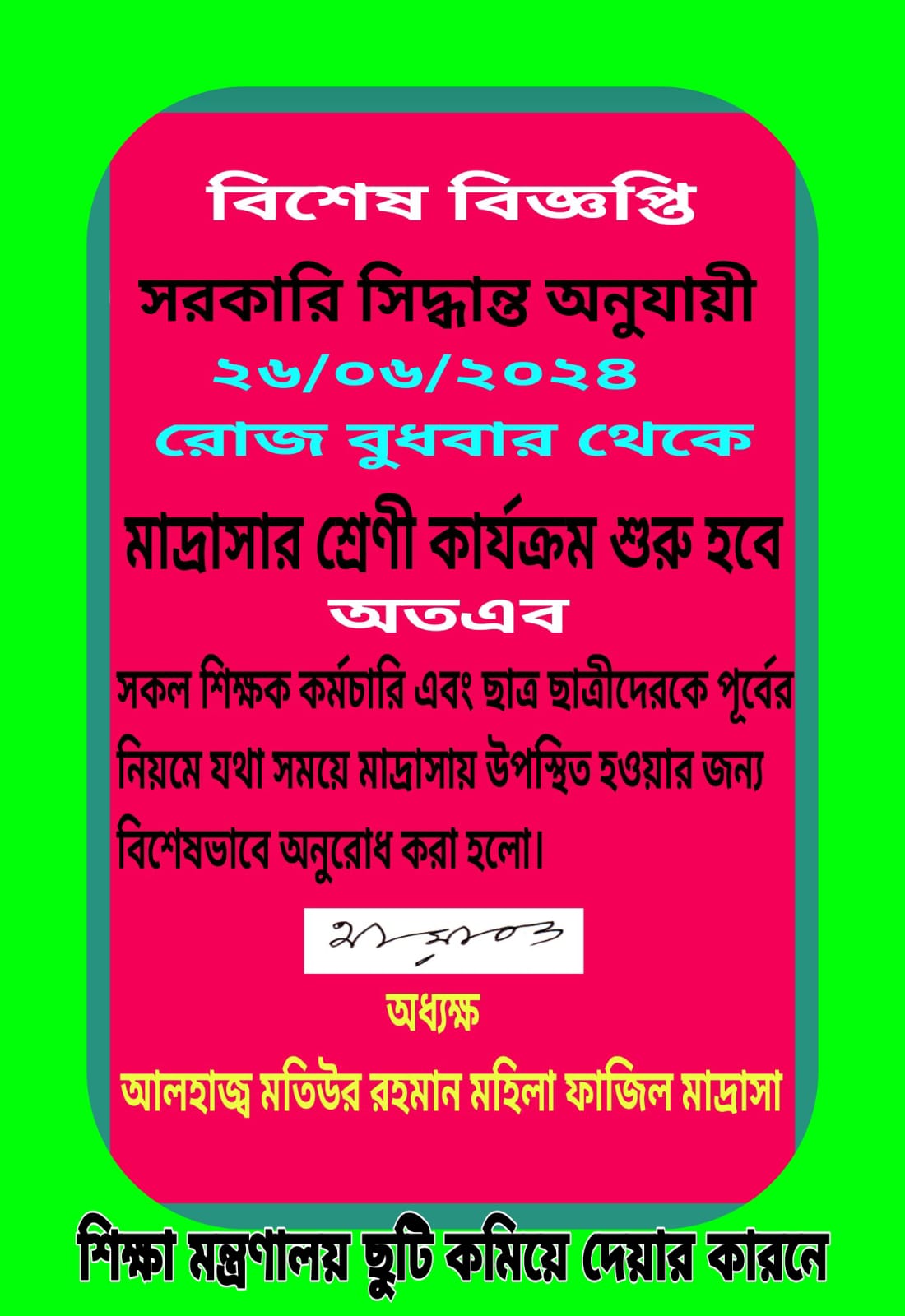 শিক্ষা মন্ত্রণালয় ছুটি কমিয়ে দেয়ার বিজ্ঞপ্তি